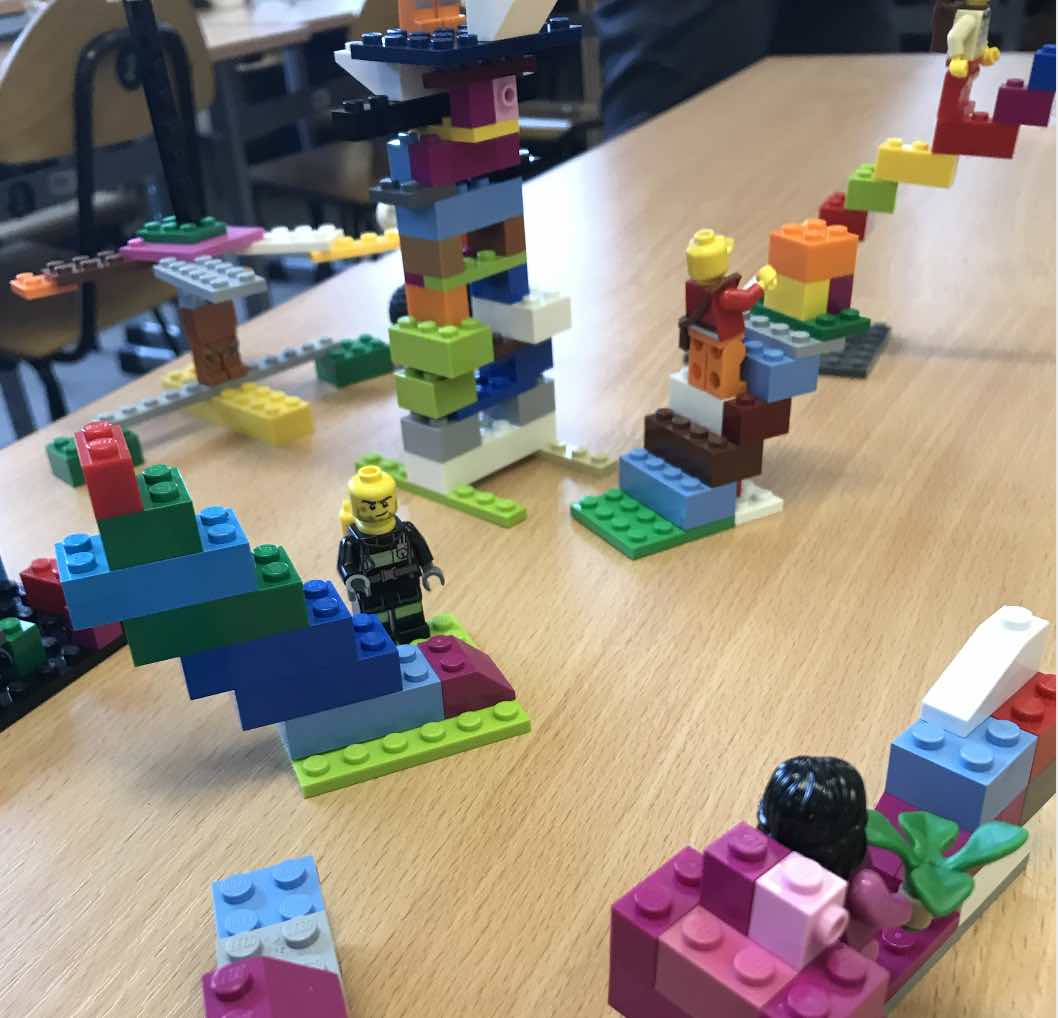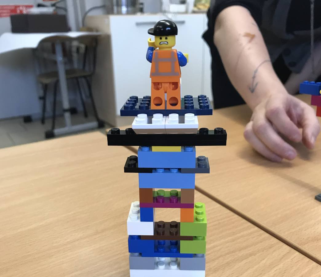 Ręce pracują podczas warsztatu równie intensywnie, co głowa! Uczestnicy budują, uczą się posługiwać metaforą.